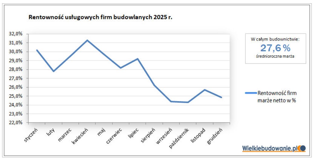 Z uwagi na trend rynkowy w 2025 r. tj. zmniejszającą się podaż inwestycji budowlanych oraz malejące, szczególnie w drugiej połowie roku zapotrzebowanie na usługi budowlane doszło do sytuacji, gdzie z jednej strony wzrosły ceny usług budowlanych, z drugiej zaś spadła i to znacznie rentowność firm budowalnych.